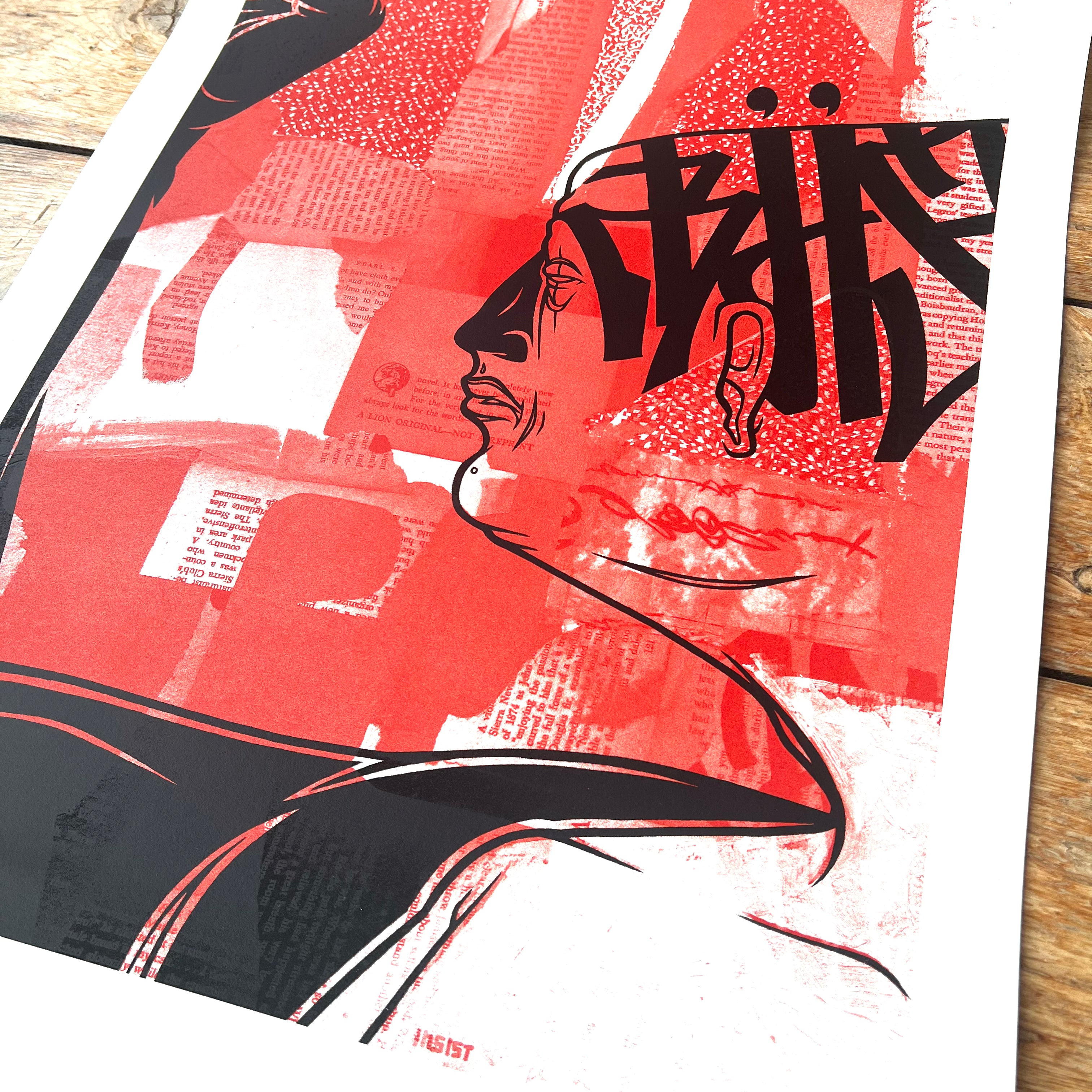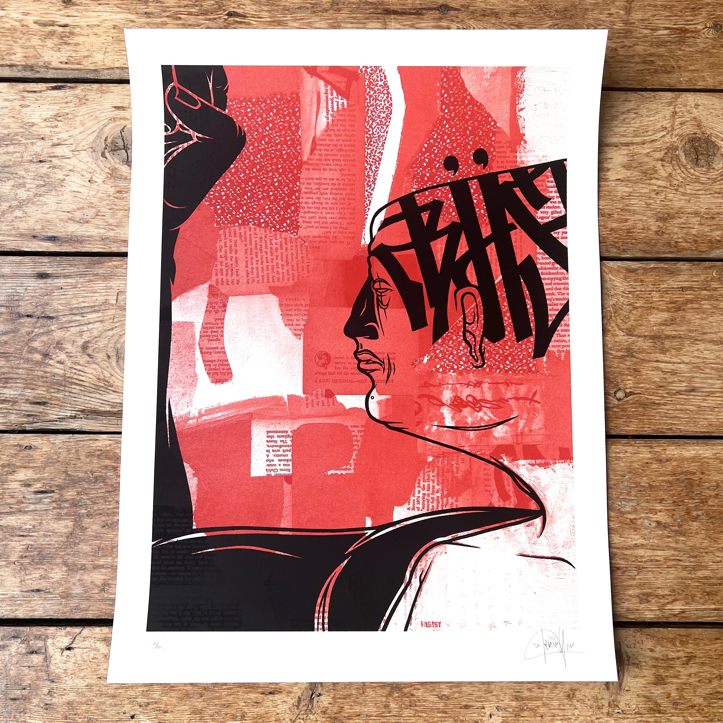 Collectable graphic, mixed media style print. An uber cool piece by Kinsey featuring some nicely formed tag writing and figurative illustration.